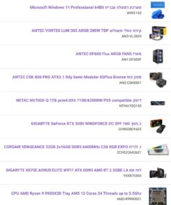 מחשב זה תוכנן ונבנה כדי לספק מקסימום עוצמה, אמינות ויעילות – בין אם לצורכי גיימינג תחרותי, עריכת וידאו, תלת־ממד, או סביבת עבודה כבדה. הרכיבים המובחרים שולבו בתשומת לב גבוהה לפרטים, וההרכבה בוצעה באופן מקצועי: כבלי חשמל מסודרים בקווים נקיים, משחה טרמית נמרחה בדיוק הנדרש, כל הברגים הוברגו במקום, מערכת ההפעלה הותקנה באופן מלא כולל הדרייברים, והביוס עודכן לגרסה האחרונה.